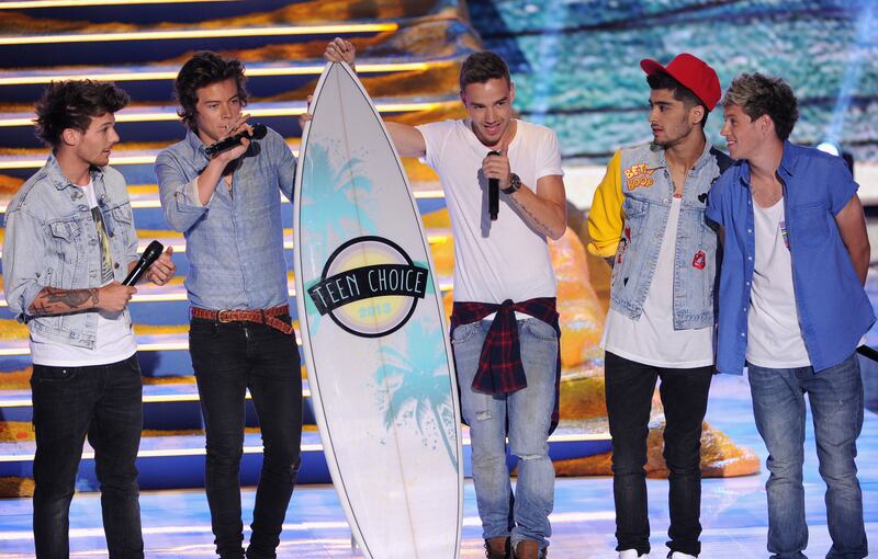 Teen Choice Awards 2013 - Show UNIVERSAL CITY, CA - AUGUST 11: (L-R) Singers Liam Payne, Harry Styles, Louis Tomlinson, Zayn Malik and Niall Horan of One Direction accept Choice Group award onstage during the Teen Choice Awards 2013 at Gibson Amphitheatre on August 11, 2013 in Universal City, California. (Photo by Kevin Winter/Getty Images) (Kevin Winter/Getty Images)
