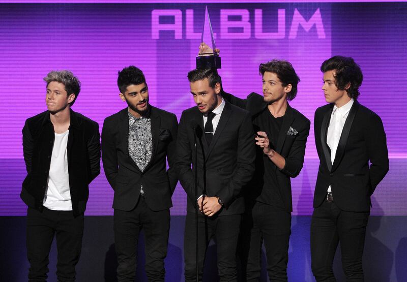 2013 American Music Awards - Show LOS ANGELES, CA - NOVEMBER 24: Singers (L-R) Niall Horan, Zayn Malik, Liam Payne, Louis Tomlinson, and Harry Styles of One Direction accept the Favorite Pop/Rock Album award for 'Take Me Home' onstage during the 2013 American Music Awards at Nokia Theatre L.A. Live on November 24, 2013 in Los Angeles, California. (Photo by Kevin Winter/Getty Images) (Kevin Winter/Getty Images)