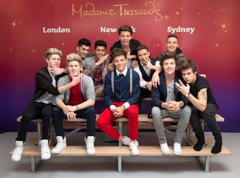 One Direction Waxworks Unveiled At Madame Tussauds LONDON, ENGLAND - APRIL 16: In this handout image provided by Madame Tussauds, (L-R) Niall Horan, Zayn Malik, Louis Tomlinson, Liam Payne, and Harry Styles of One Direction pose alongside their Madame Tussauds wax figures on April 16, 2013 in London, England. The figures were unveiled to fans on April 18 at Madame Tussauds London, where guests can visit them for 12 weeks only before they embark on a 'world tour', visiting Madame Tussauds New York and Sydney. The wax figures will make their official debut in Sydney on 24 October, 2013. (Photo by Madame Tussauds via Getty Images) (Handout/Getty Images)