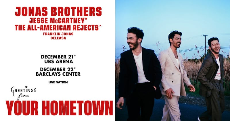 NO PURCHASE NECESSARY. VOID WHERE PROHIBITED. 9/30/25-12/7/25. Open to legal residents of Nassau or Suffolk County in New York State, 18+. To enter go to WBLI.com and follow the on-line instructions to enter. Odds vary. Prize: two (2) tickets to see The Jonas Brothers at UBS Arena on December 21, 2025 OR at Barclays Center on December 22, 2025. (ARV: Minimum of $100.00 based on seat location and availability). For full rules, click here. Sponsor CMG NY Radio, LLC d/b/a Cox Media Group Long Island.