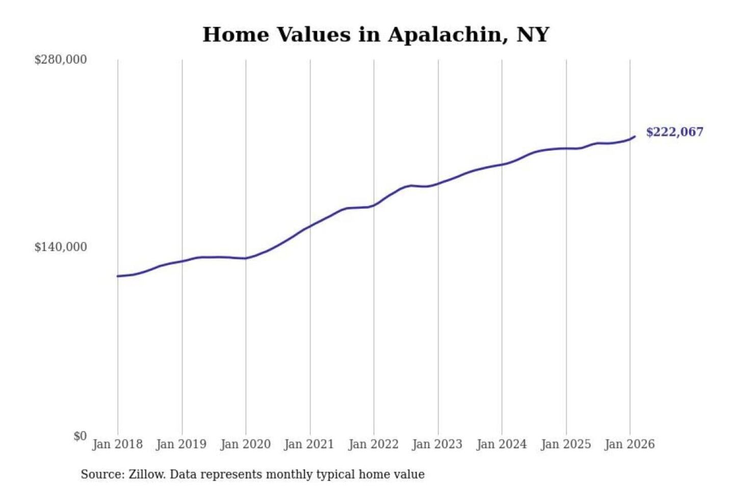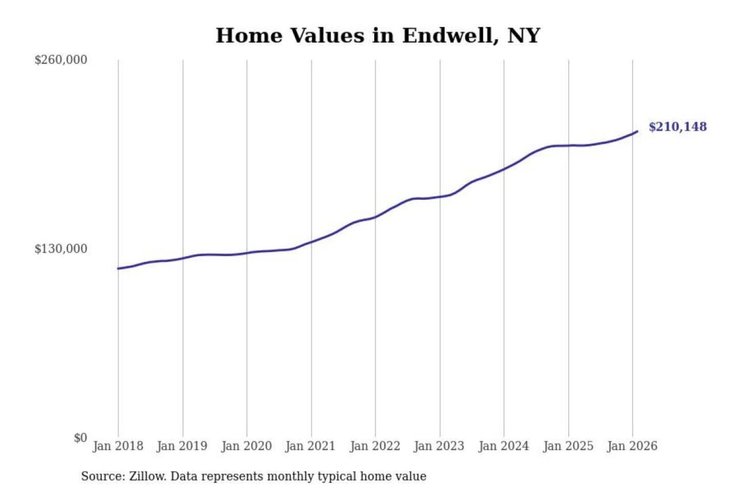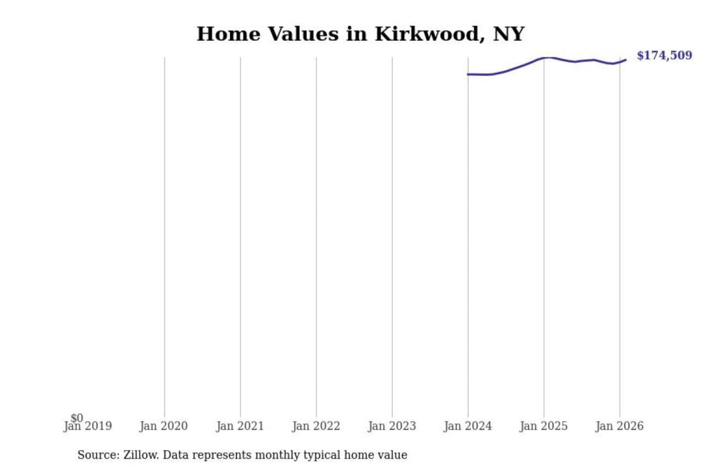 Stacker compiled a list of cities with the most expensive homes in the Binghamton, NY metro area using data from Zillow. Charts show the monthly typical home value since January 2018.
