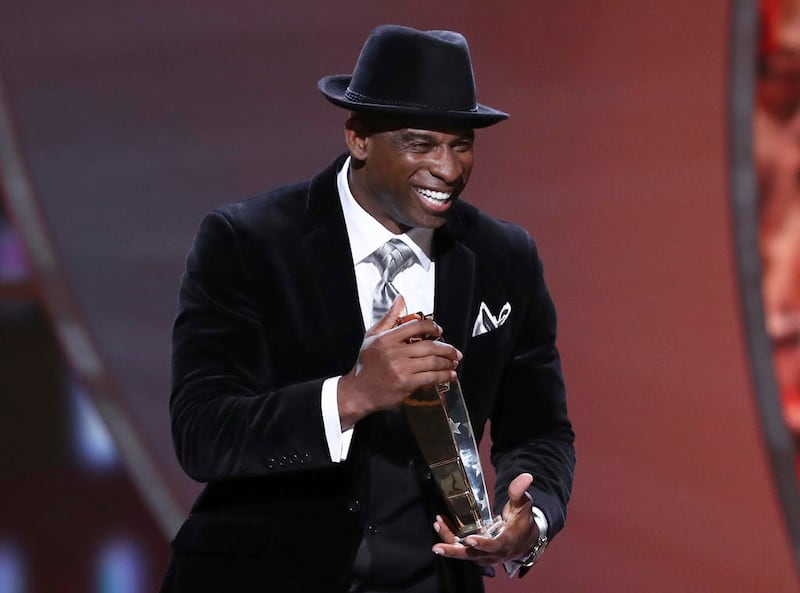 Deion Sanders IMAGE DISTRIBUTED FOR NFL - Former NFL player Deion Sanders presents the award for AP Coach of the Year at the 6th annual NFL Honors at the Wortham Center on Saturday, Feb. 4, 2017, in Houston. (Photo by John Salangsang/Invision for NFL/AP Images) (John Salangsang/Invision for NFL)