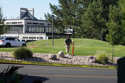 Search for gunman OREM, UTAH - SEPTEMBER 11: Crime scene tape flies in front of a 9/11 memorial following the fatal shooting of political activist Charlie Kirk during an event at Utah Valley University on September 11, 2025 in Orem, Utah. Authorities have released a "person of interest" as they search for the suspect who shot and killed Kirk, founder of Turning Point USA, while he was speaking at an event for his "American Comeback Tour". (Photo by Michael Ciaglo/Getty Images) (Michael Ciaglo/Getty Images)