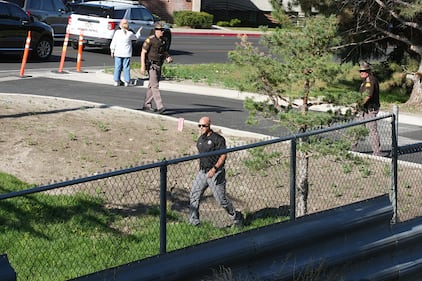 Search for gunman OREM, UTAH - SEPTEMBER 11: A police officer walks out of a building at Utah Valley University as authorities investigate the fatal shooting of political activist Charlie Kirk on September 11, 2025 in Orem, Utah. Authorities have released a "person of interest" as they search for the suspect who shot and killed Kirk, founder of Turning Point USA, while he was speaking at an event for his "American Comeback Tour". (Photo by Michael Ciaglo/Getty Images) (Michael Ciaglo/Getty Images)